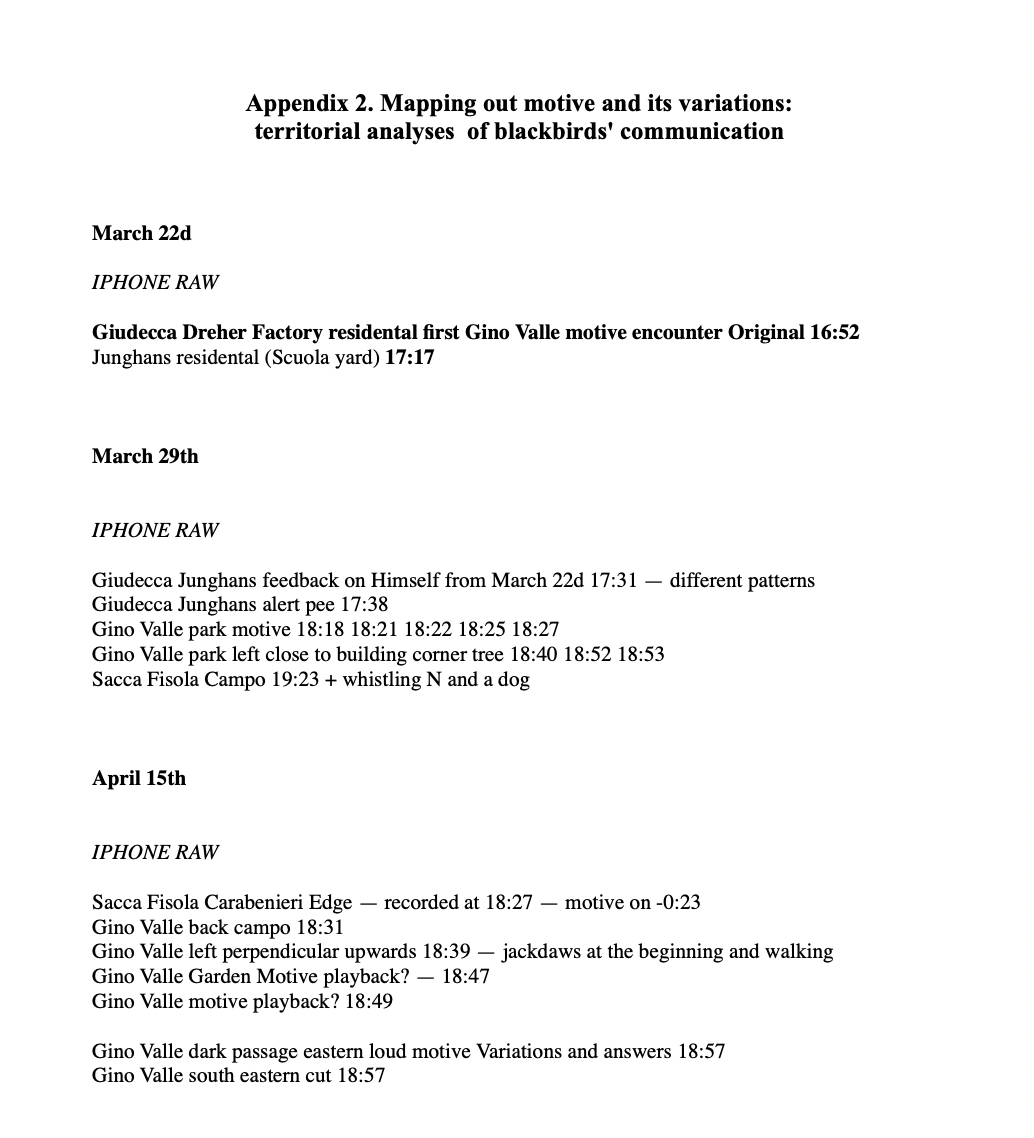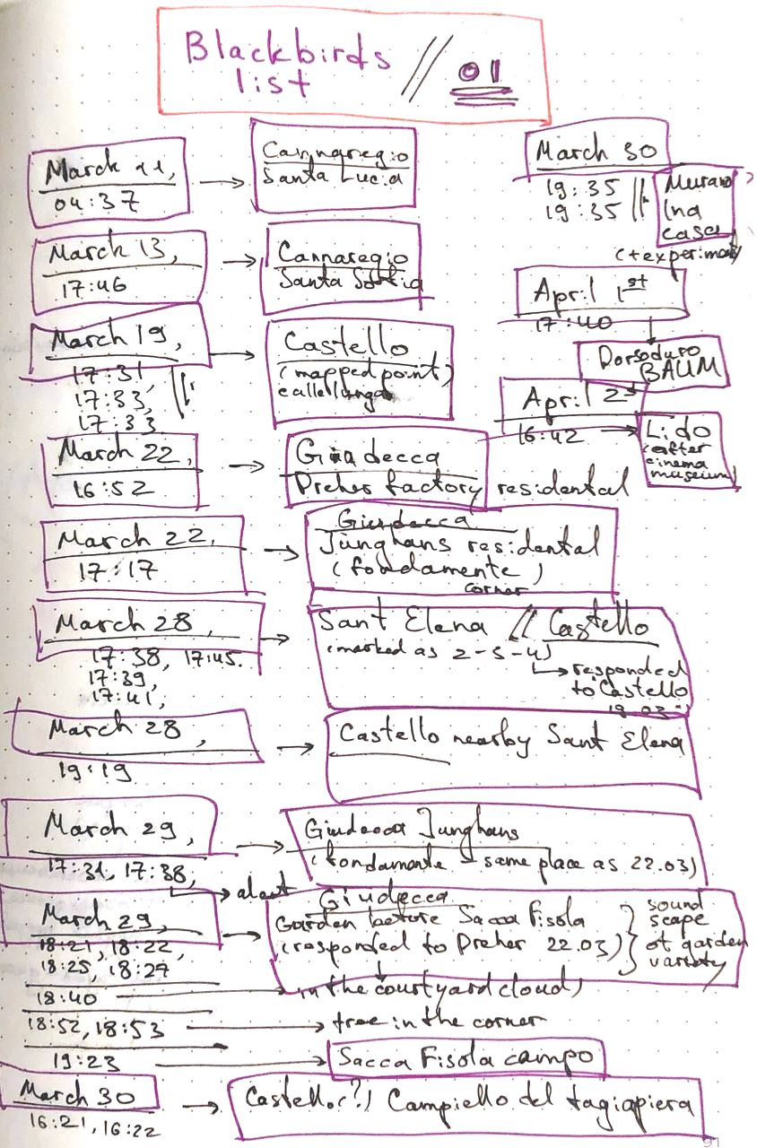 blackbird vocalizations are typically venetian sonic events, dynamic and performative soundmarks, environmental cuts and fields meeting human environments historically, ecologically and situationally